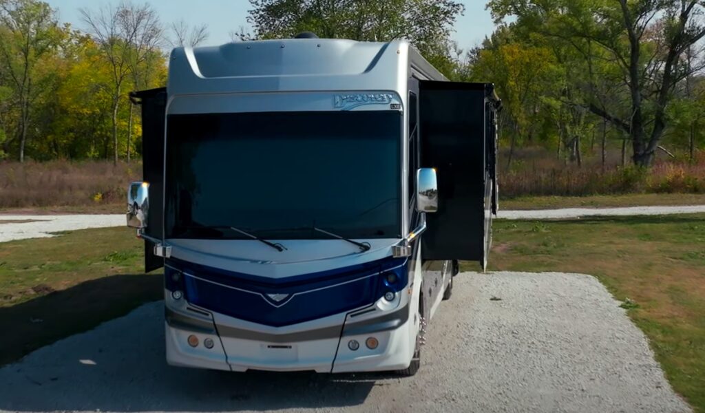 The 2020 Fleetwood Discovery LXE 44H represents the pinnacle of luxury diesel motorhomes, combining power, space, and cutting-edge technology with Fleetwood’s renowned craftsmanship. Built on the Freightliner XCM chassis and powered by a Cummins ISL9 450HP diesel engine producing 1,250 lb-ft of torque, this coach delivers exceptional performance and a smooth, confident ride.